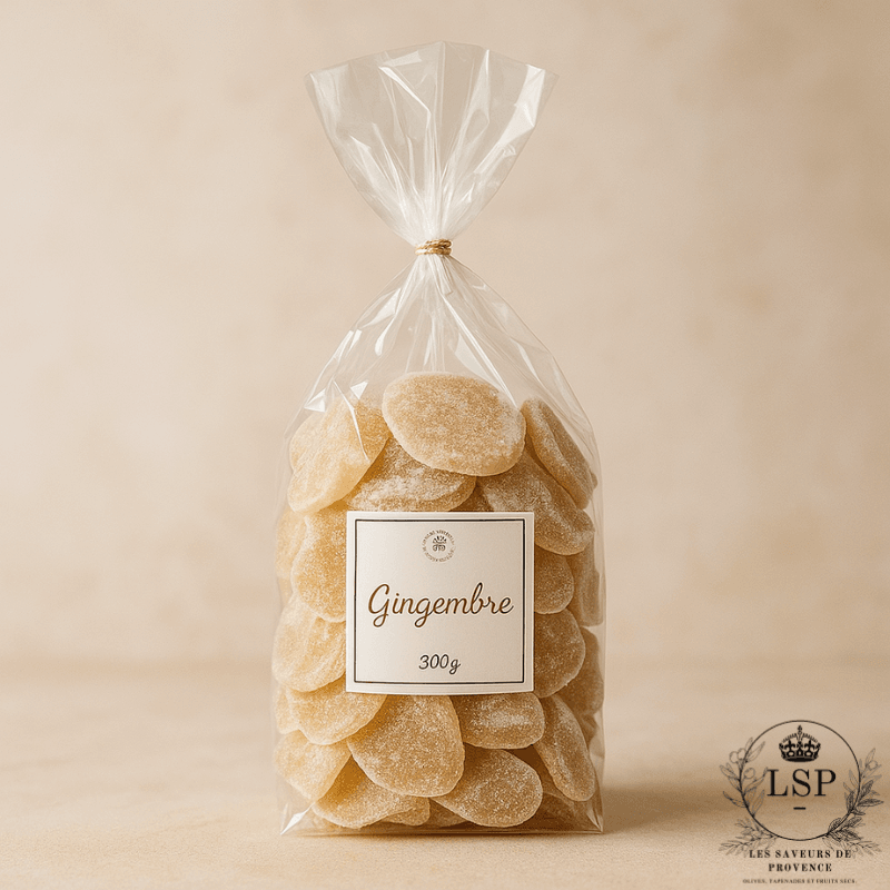 Afin de préserver toute la texture du gingembre tout en adoucissant son intensité naturelle, notre gingembre est déshydraté à basse température, puis légèrement confit avec du sucre. Ce sucre est dosé avec justesse : juste assez pour donner une texture tendre, sans masquer les notes fraîches et épicées typiques de la racine.