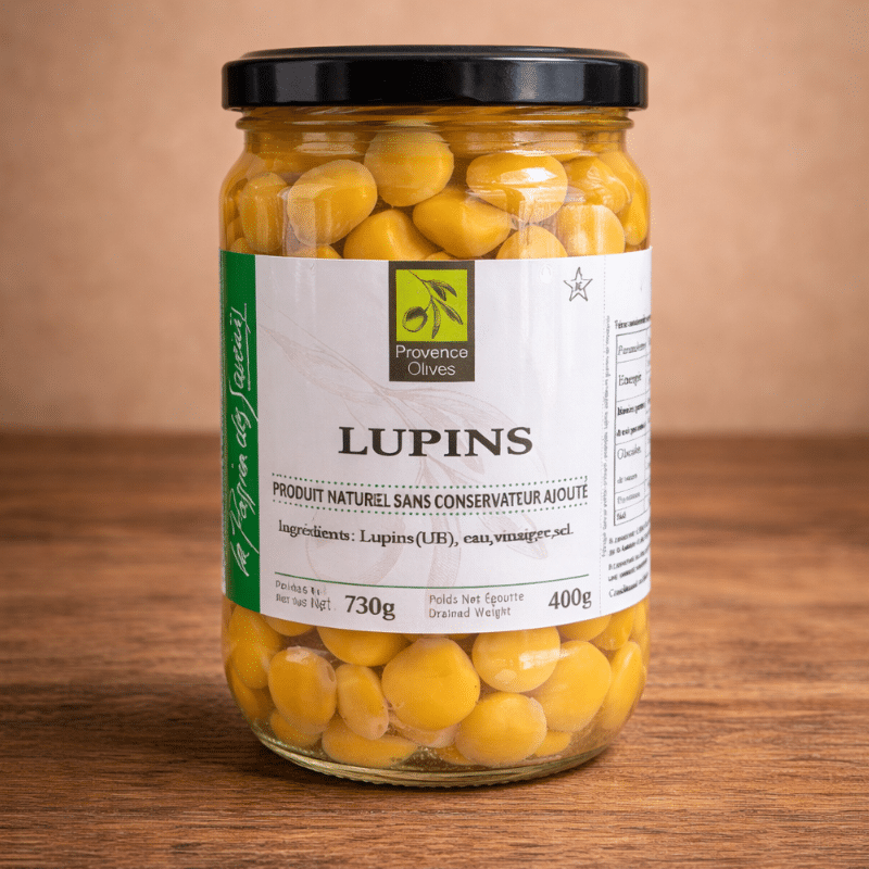 Chez Les Saveurs de Provence, nous proposons des lupins apéritif sélectionnés pour leur qualité gustative et leur texture ferme. Conservés dans une saumure légère à base d’eau et de sel, sans conservateur ni additif, ils expriment pleinement leur saveur naturelle de légumineuse douce et légèrement noisettée.