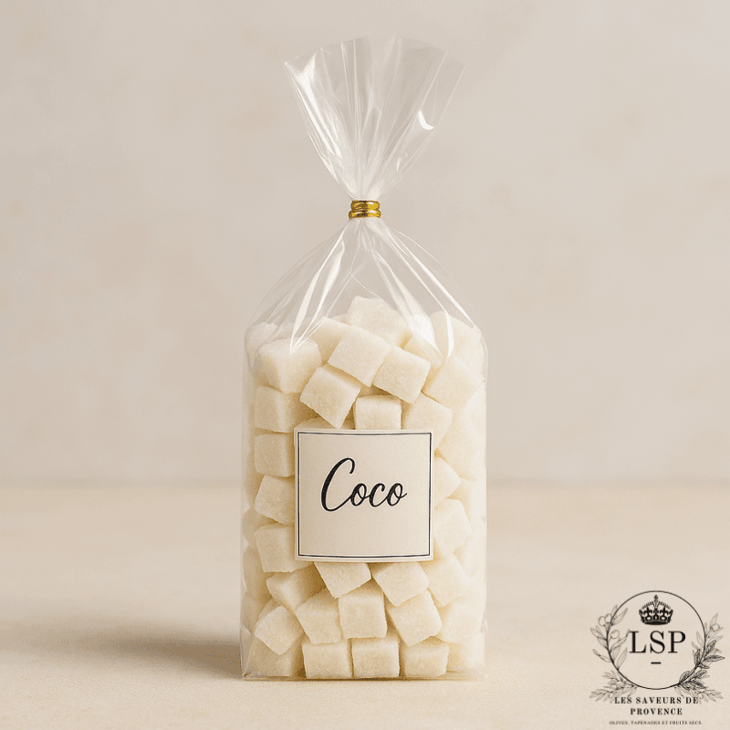 Les sachets refermables permettent une conservation optimale du moelleux naturel des cubes de coco.